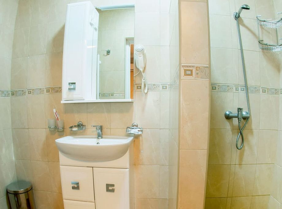 Зручна та простора ванна кімната, в кожній кімнаті міститься набір гігієни, фен, одноразові тапочки