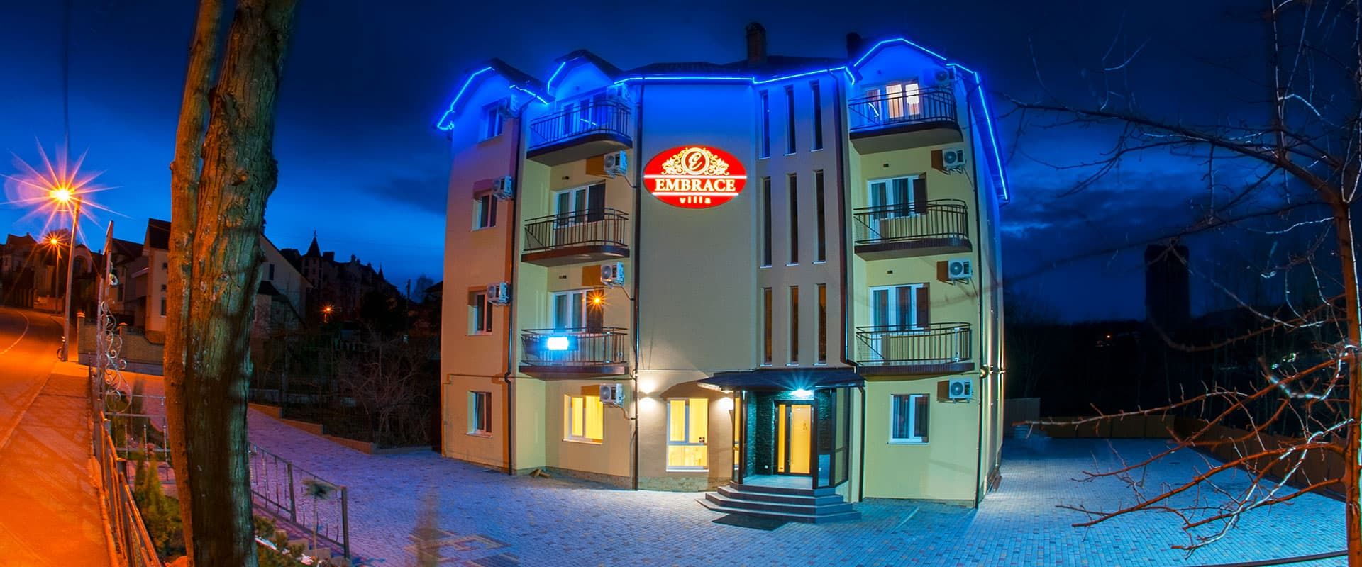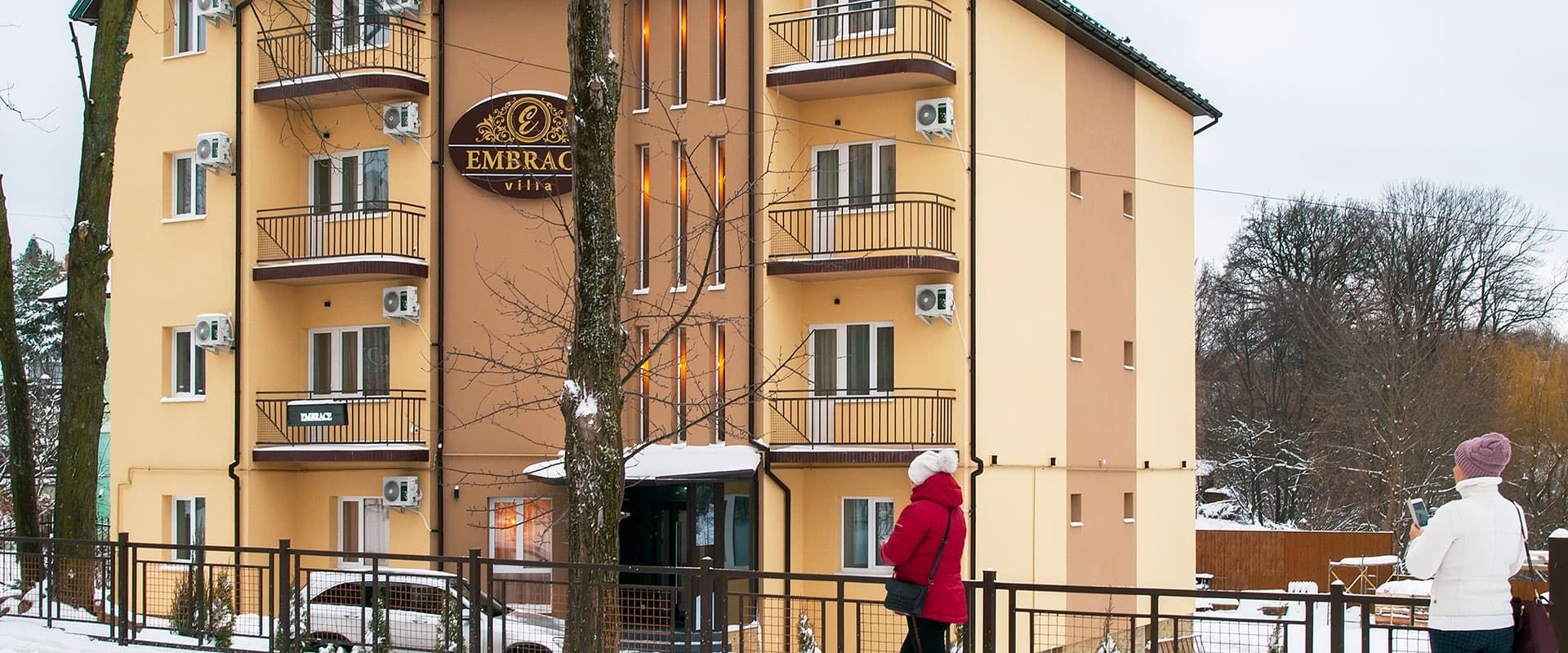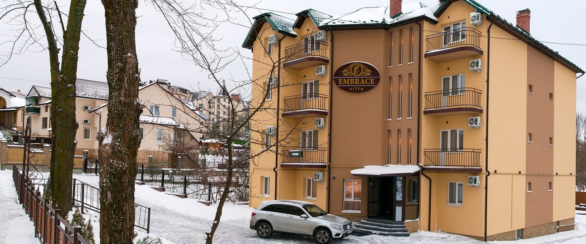 Вілла Embrace в Трускавці - це сучасна будівля, побудована в європейському стилі. Її дуже легко знайти, адже місце локації вілли - центр Трускавця. Будівля дуже «молода», так як її здали в експлуатацію з листопада 2019 року. Поруч знаходяться бювет мінеральних вод Нафтуся, Юзя, Марія, Софія та інші, курортний парк площа якого становить понад 60 га, а також інші зони відпочинку і теренкури.