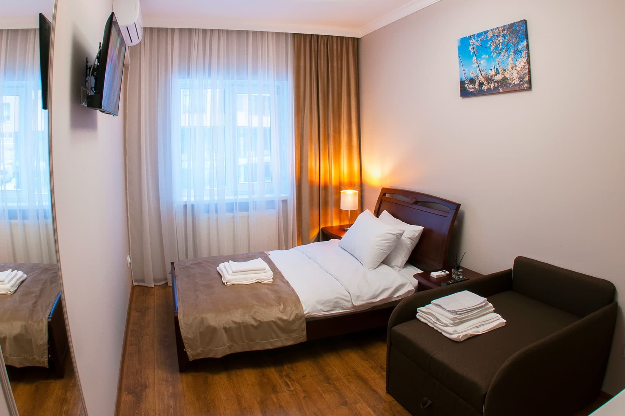 Один з найбільших та просторих двокімнатних номерів, площа якого складає 34кв., в номері може проживати 4 особи